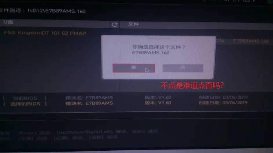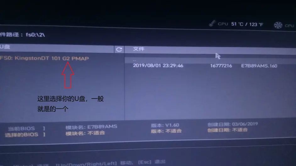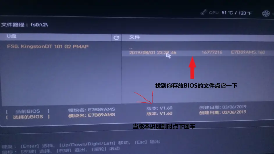 选择好U盘后找到你改好BIOS文件的所在位置,并且双击检测版本号是否正确然后回车